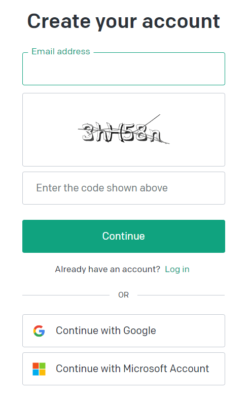 首先打开ChatGPT的账户注册页面。谷歌注册或者邮箱注册都可以,无所谓,我们这里用邮箱注册作为例子。